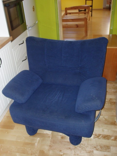 Sedežna garnitura (trosed, dvosed, fotelj), set (štirih) nizkih omaric, garderobna omara, zakonska postelja, postelja, pisalna miza s stolom (dotrajana), manjša knjižna omara (dotrajana).
