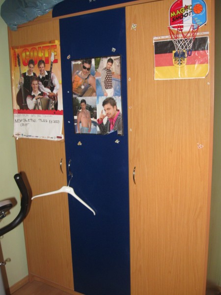 Pohištvo je celo, polepljeno je le z raznimi nalepkami, katere je potrebno očistiti. Pohištvo je potrebno razstaviti in ga odnesti iz 3.nadstropja.