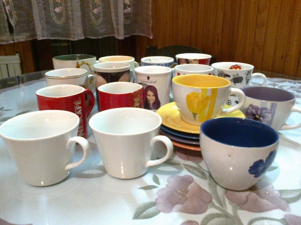 Podarimo 9 različnih skodelic za čaj,7 skodelic za kavo in 4 podstavka.Vse je odlično ohranjeno.