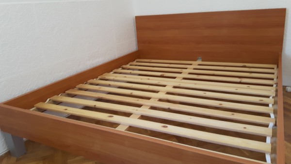 Dobro ohranjena zakonska postelja brez jogija (star in v slabem stanju).