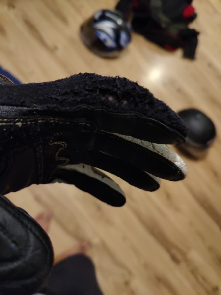 Podarim motoristično jakno in rokavice. Rokavice so iz kengurujevega usnja in v okej stanju, pri jakni se je pa penasti ščitnik v komolcih stopil (od vročine verjetno) in bi ga bilo potrebno dati ven in očistiti. Jakna ima tudi notranji vložek za dež