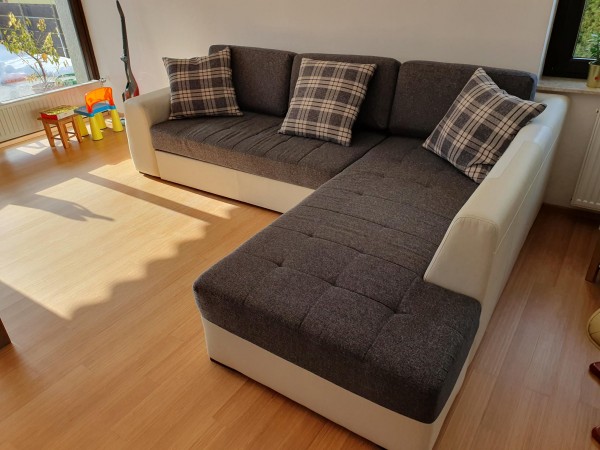 Sedežna garnitura dolžine 2,5 m. Usnjeni nasloni so obrabljeni (zgornji sloj se nekaterih mestih lušči) ni pa sedežna nikjer poškodovana ali strgana. Vključene blazine. Sedežna je na razpolago od četrtka 23.2. do sobote 25.2.2023.Lokacija Prevalje na Koroškem.
