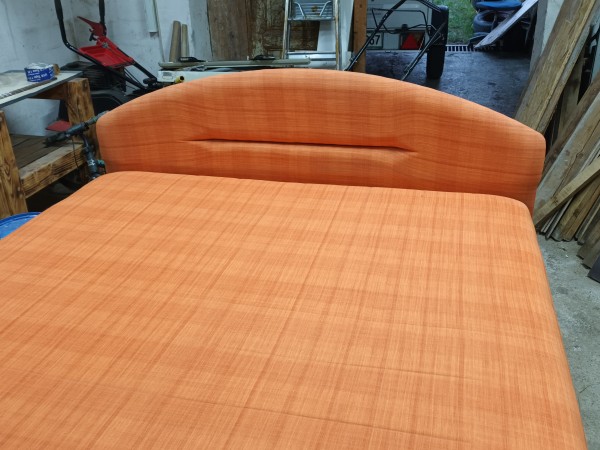 Podarim dobro ohranjeno oranžno tapecirano posteljo z vzmetenim ležiščem, ki je še popolnoma ravno, brez vboklin od ležanja. Pod posteljo je predal za shranjevanje. Postelja je pripravljena za prevzem v prostoru, dostopnem z večjim vozilom ali prikolico.