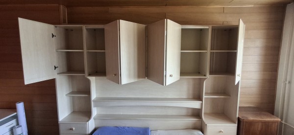 Podarimo komplet spalnico 8 delna omara, velikosti 4 x 1 m, 2 nočni omarici in postelja 180x200 cm.