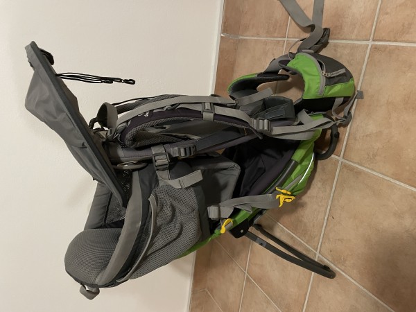 Dobro ohranjena oprema za otroka, stara cca 10 let - voziček komplet, voziček marela, avto sedeža, sedež za kolo, nahrbnik, lesen stol.