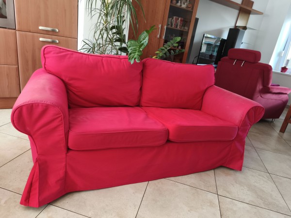 Zofa je mestoma obledela. Prevleko se lahko zamenja z novo za 69 ali 99 evrov. Odvisno od prevleke. Drugače je zofa v odličnem stanju.https://www.ikea.com/si/sl/p/ektorp-2-seda-zofa-hakebo-temno-siva-s09509013/https://www.ikea.com/si/sl/p/ektorp-prevleka-za-2-sedo-zofo-kilanda-svetlo-bez-10565357/