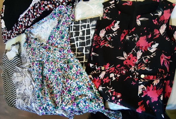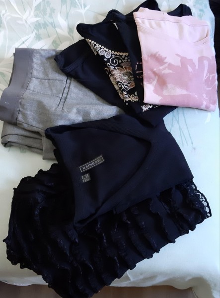Podarim štiri ženske poletne obleke št. 38/M, mini krilo št. M, črn bolero z dolgimi rokavi št. M-L, dolge svetlo sive hlače Sinsay št. M in nekaj majic s kratkimi rokavi št. M-L.