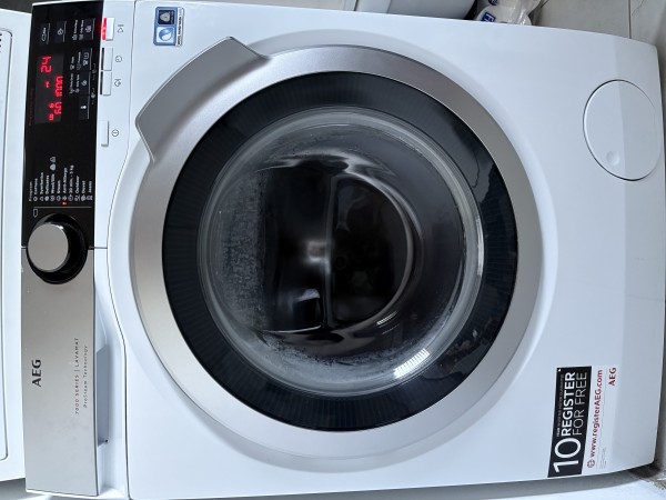Pralni stroj je star 7 let, ima 9kg boben, je bele barve. Standardne velikosti.