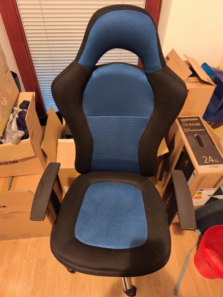 Podarim cca dve leti star računalniški stol kupljen v Jysku. Lepo ohranjen brez napak. Bil v uporabi kakšno leto, sedaj stoji.