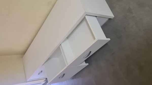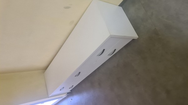 Regal je kot nov, dimenzije so 200 x 50 cm, ima 4 klasične predale in enega globokega. Je pa kar težek. Pridite ga sami iskat na hodnik mojega bloka, in sami uredite tudi prevoz. Lahko takoj.