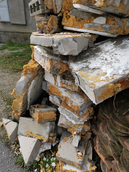 Siporeks rabljen, ni nov. Ohranjeno do te mere, da je možno iz njega ponovno sezidati steno.