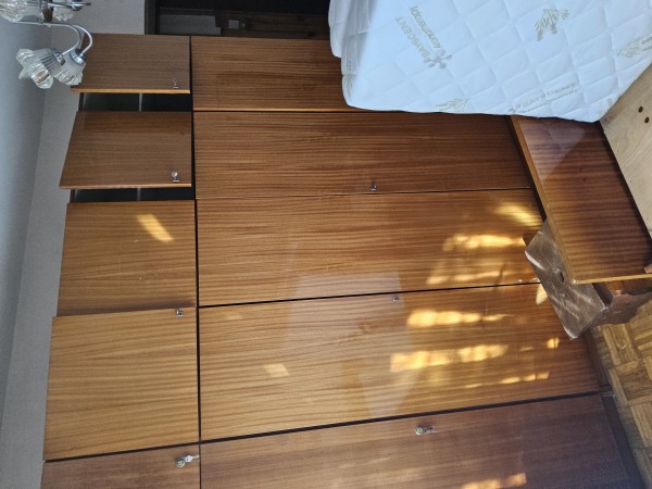 Spalnica je v rjavi barvi 5 vratna z posteljo 180 x 190