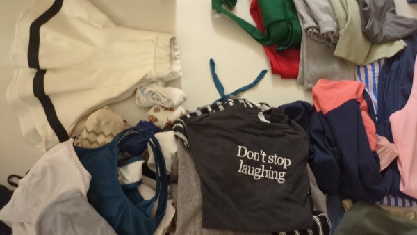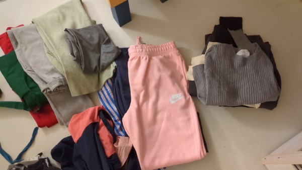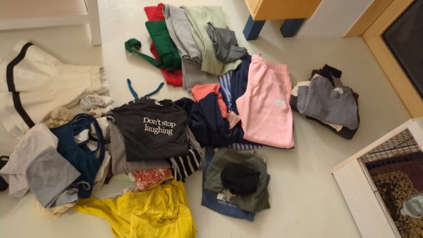 Čista oblačila, ki so bila razvrščena: majice, nogavice, kopalke, hlače, spodnje hlačke.