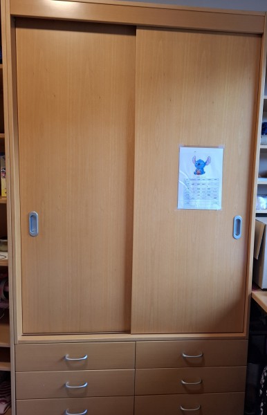 Omara za oblačila s sestimi predali. Dimenzije so 115 x 210 x 55 cm. Je zelo lepo ohranjeno in vse lepo deluje.