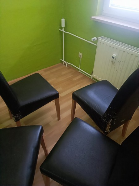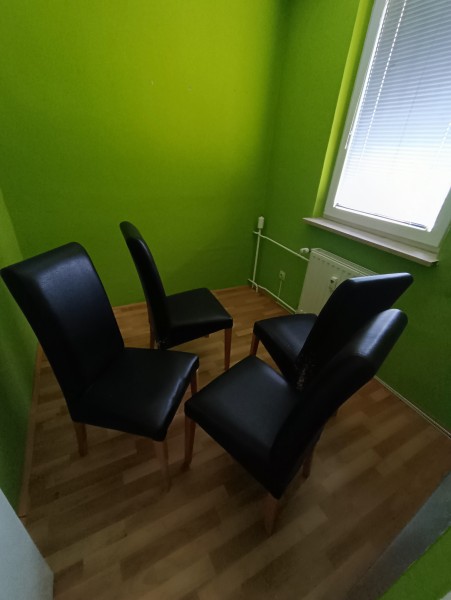 Podarjamo usnjene rdecw kuhinjske stole, dva zelo in dva malo unicena od macjega praskanja.