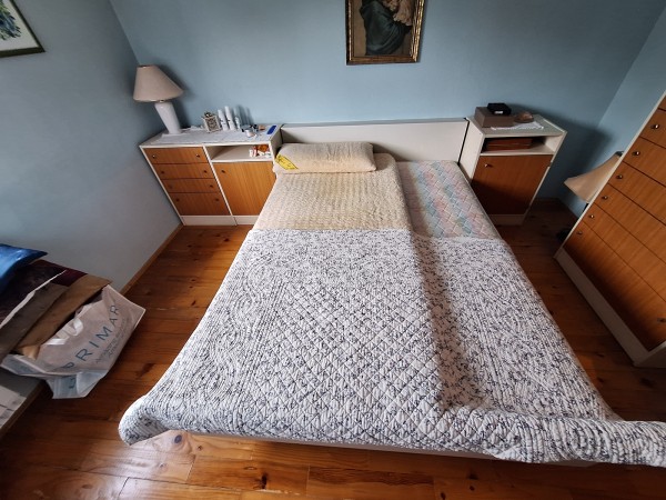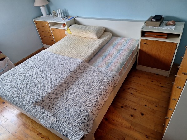 Spalnica z dvema nočnima omaricama.Če nihče ne bo zahteval cele, lahko tudi po kosih.