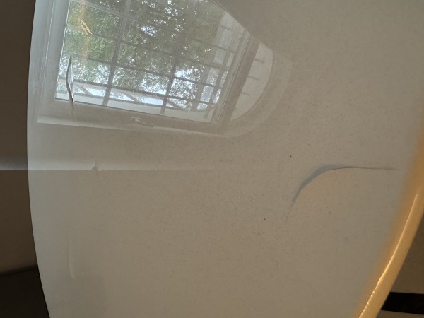 Na mizi so vidne tri poškodbe, verjetno povzročene z odlaganjem vroče posode (glej priložene slike). V ostalem je miza dobro ohranjena.
