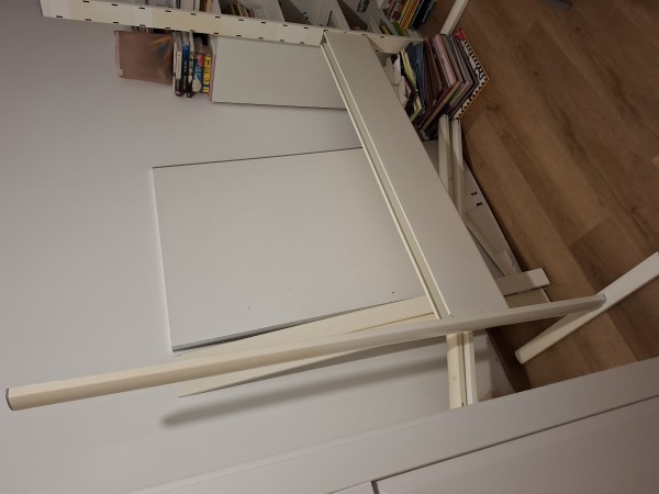 Podarim belo pisalno mizo (s/d/v: 128/150/72) in roza stol (40/80/45).