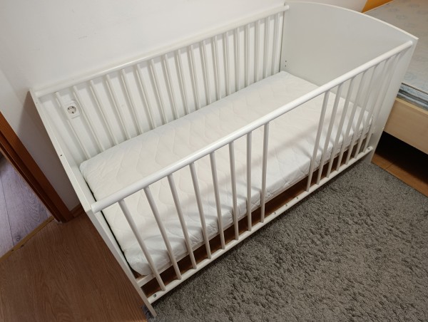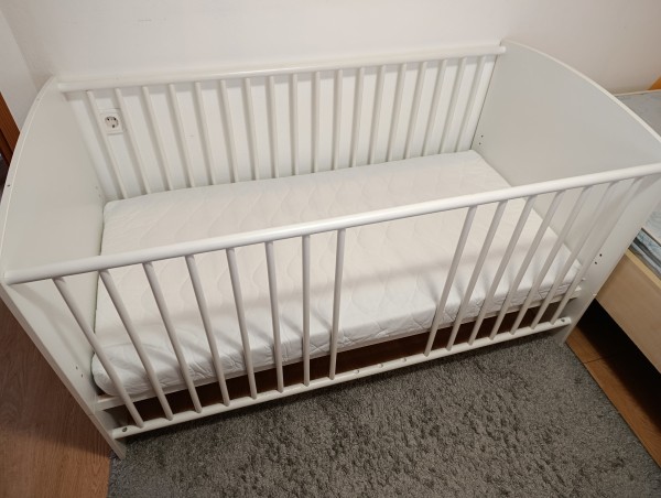 Podarim otroško posteljo z jogijem. Na postelji so snemljive stranske letvice, za samostejen vstop in izstop otkroka v posteljo. Zraven je ležišče- jogi. Vse kot skoraj novo, uporabljano ob obiskih otrok. Velikost postelje 78 x 145 cm.
