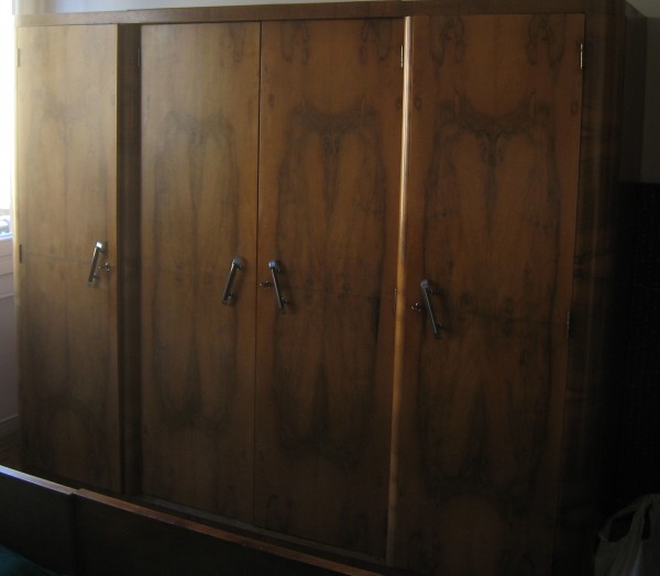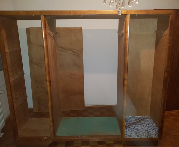Razstavljena garderobna omara, štiridelna - ob straneh police, na sredini za obešalnike. Pogoj je prevzem v Ljubljani na lokaciji.