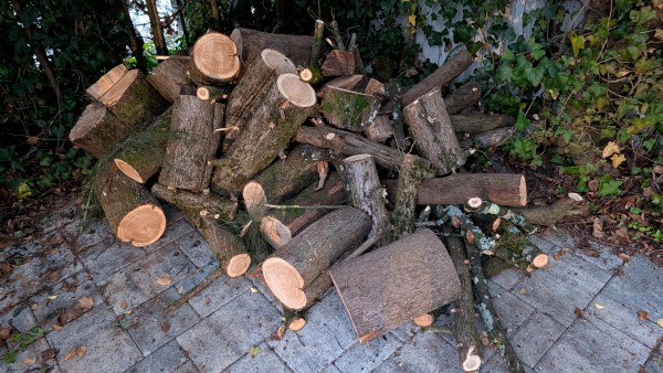 Podarim okoli pol kubika (se mi zdi) nažaganih debel in vej dveh posušenih cipres iz vrta.