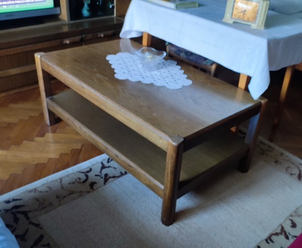 Podarim klubsko mizico s polico, masivno, temni hrast, velikosti v/d/š 46/116/66.