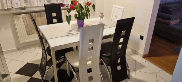 Podarjamo set črno belih stolov. V setu jih je vse skupaj šest kosov. 2 sta bolj obrabljena kot ostali štirje.