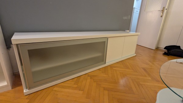 Podarimo omarico za televizijo velikosti 200x47x50cm. Bele barve z dodatki stekla. Prevzem v Ljubljani (Vodmat), v soboto. 15.11.
