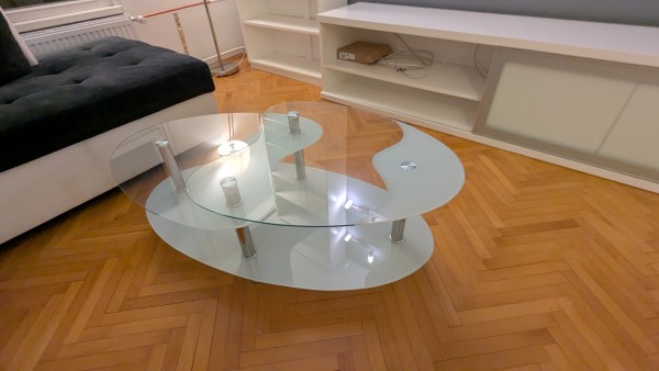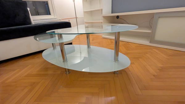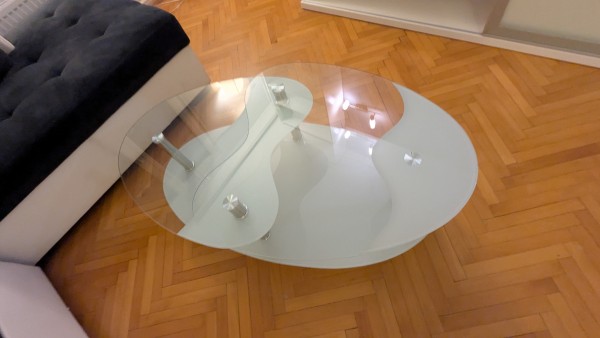 Podarimo stekleno čajno mizico velikosti 110x60cm.