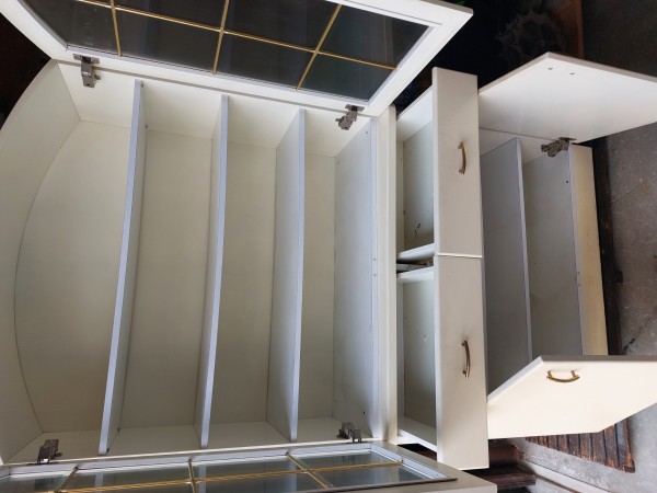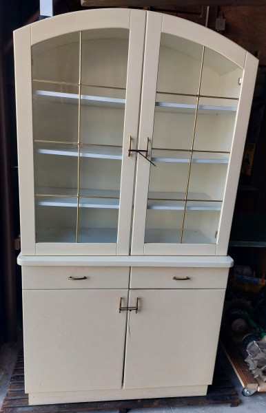 Podarim dve ločeni omari, videni na slikah. Dimenzija spodnje omare Š-102 cm, V-85 cm, G-48 cm. Zgornja omara s steklenimi vrati Š-99 cm, V-102 cm, G-38 cm.