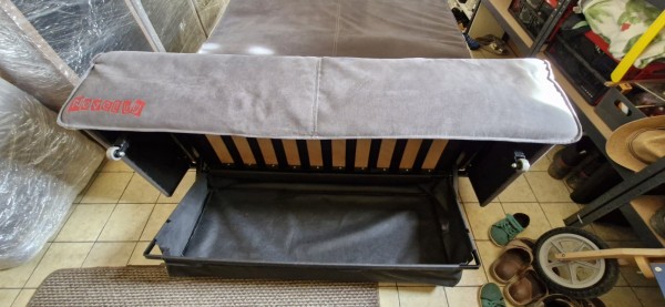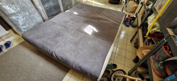 Kavč širine 160 cm, ki se raztegne v posteljo 160x200 cm, sive barve. Ima tudi priročen prostor za shranjevanje npr. posteljnine.