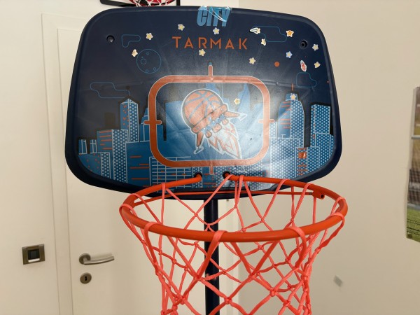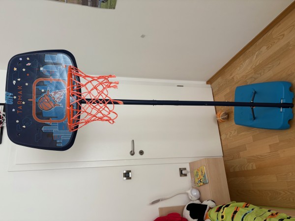 Koš višine 160 cm, spodnji del se napolni z vodo.Malo polepljena tabla z nalepkami.