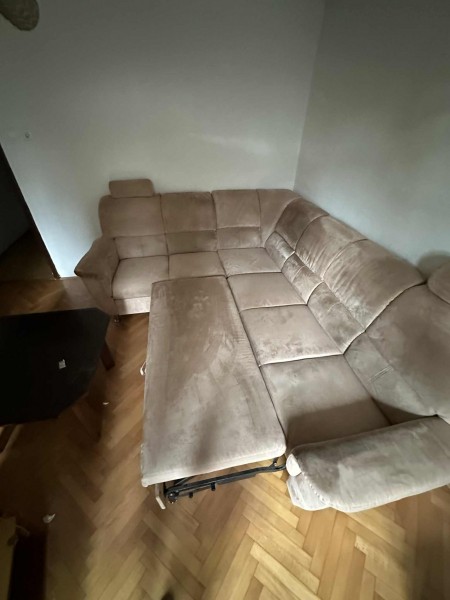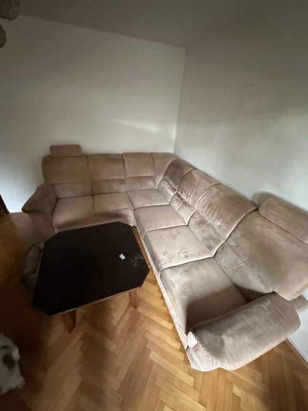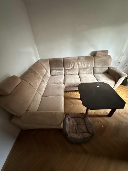 Podarim sedežno garnituro 210 x 265. Ima raztegljivo dodatno ležišče. Podarim tudi čajno mizico, oboje v kompletu.