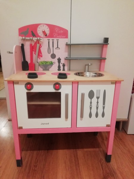 Podarim leseno kuhinjico. Vidne so sledi uporabe, vendar je še lepa za igro.