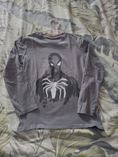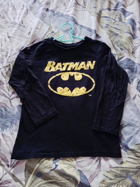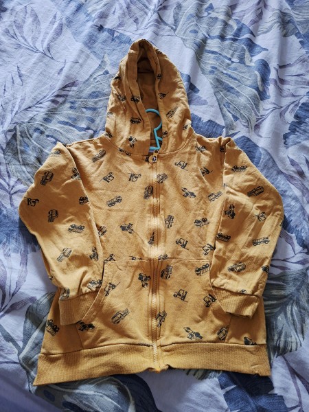 Razlicni kosi fantovskih oblacil, zgornji in spodnji deli. Vsa oblacila so primerna za velikost 122/128. Oblacila je nosil samo nas fant.
