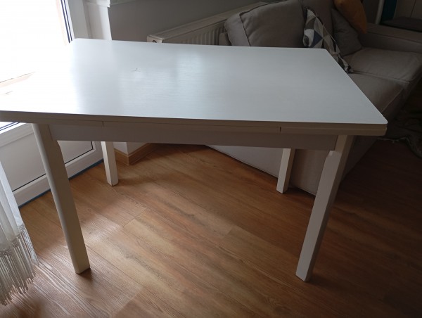 Jedilna miza bele barve, velikosti 70/110.Obojestransko raztegljiva do dolžine 170cm.
