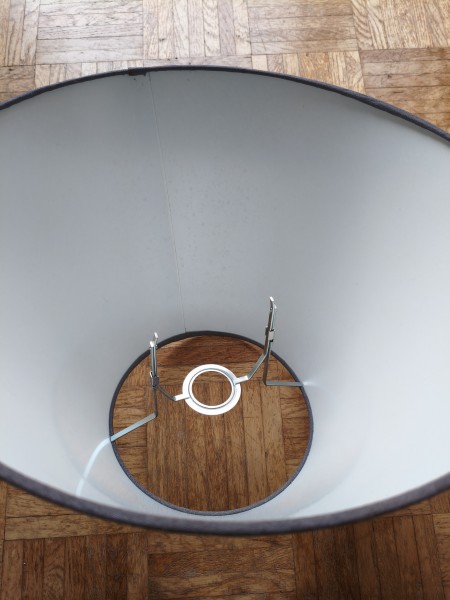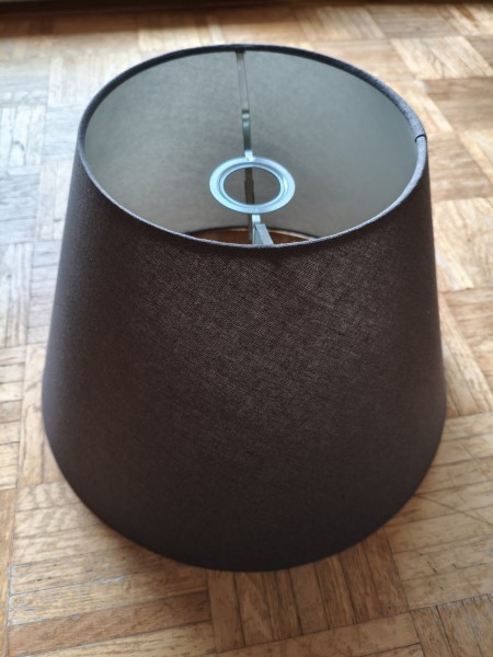 Visče svetilo, temno sive barve, stožčaste oblike (višine: 29 cm; premer zgoraj: 22 cm; premer spodaj: 42 cm), a brez električnega kabla. Zelo lepo ohranjeno.