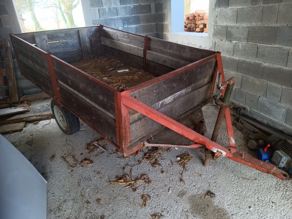 Prikolica izpravna, mere 2,50x1,50m. nosilnost vsaj 2 tone. dno je iz hrastovih desk.