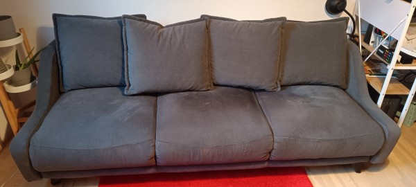 Prodam dobro ohranjen raztegljiv kavč trosed sive barve z ležiščem. Širina kavča je 220 cm, višina 70 cm, globina 85 cm. Ležišče meri ca. 200x160 cm. Za iznos (3. nadstropje, brez dvigala) in prevoz poskrbite sami. Prevzem je možen v ponedeljek, 1. 12. 2025.