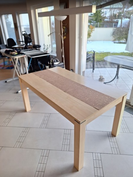 Podarjam jedilno mizo velikosti 160 x 90 cm. Miza je b barvi svetlega jaborja (furnir). Razen majših vidnih znakov obrabe je miza povsem uporabna.