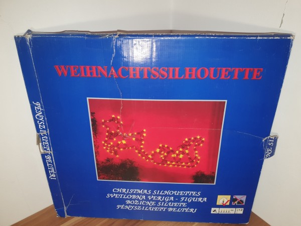 Podarim božična svetlobna okrasa za na okno v obliki Božička na saneh in jelenčka.