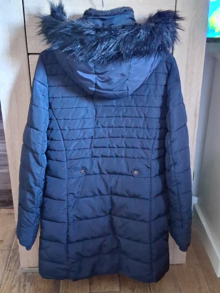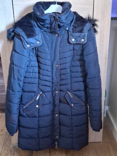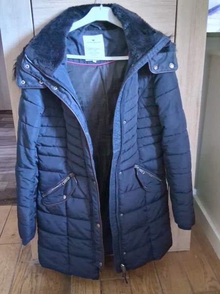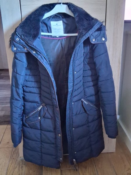Podarim žensko daljšo zimsko bundo vel.XS v temno modri barvi, blagovne znamke Tomn Tailor.
