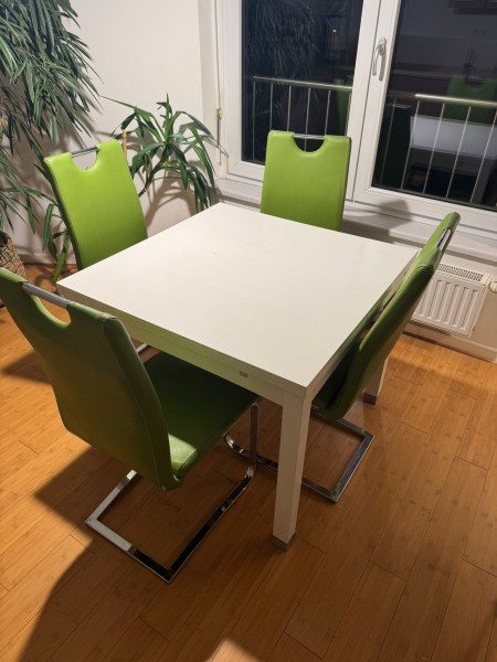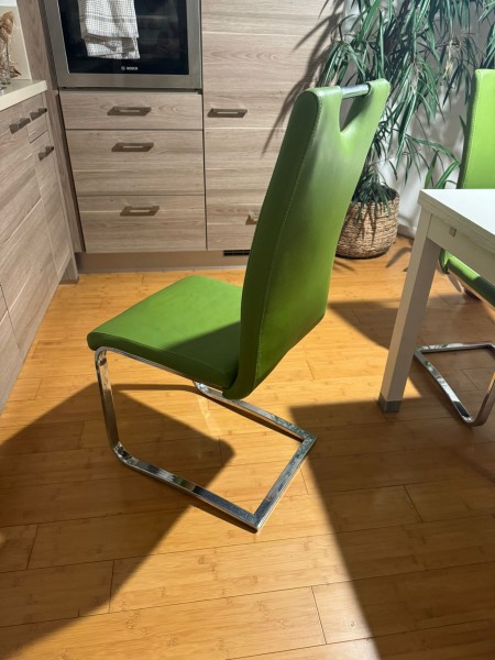 Podarim 4 rabljene kuhinjske stole zelene barve, kovinske noge, oblazinjeno.