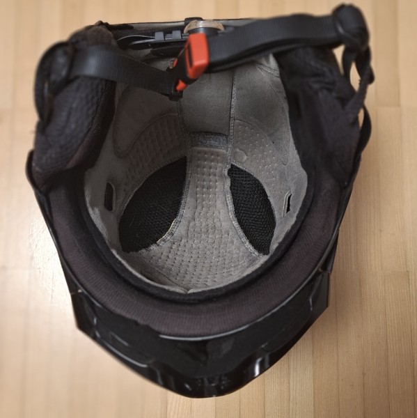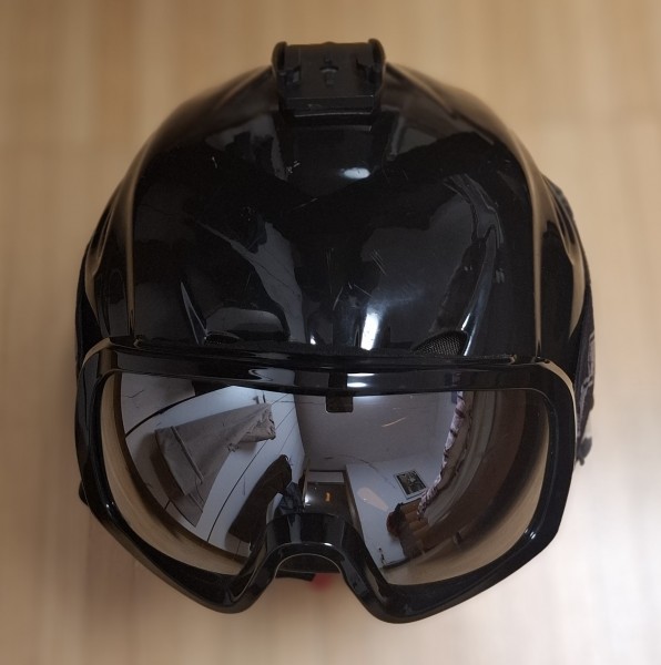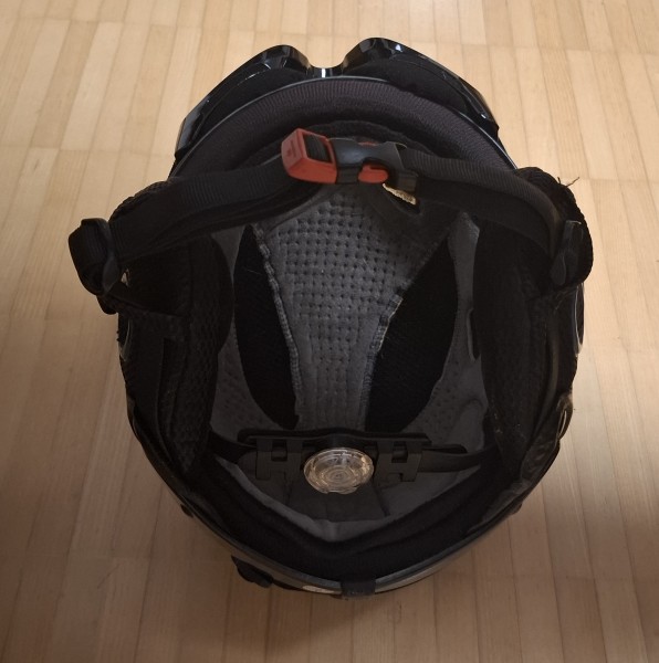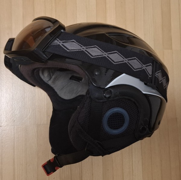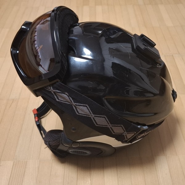 črna čelada, nastavljiva za obseg glave 56 do 58 cm, z očali in nastavkom za Gopro kamero, snemljiva pralna podloga
