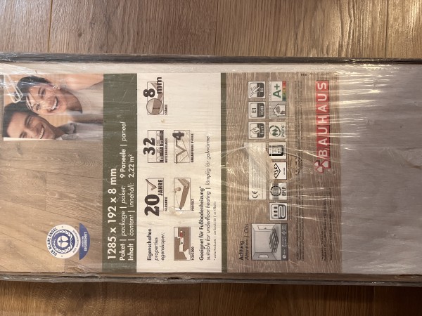 Podarim paket laminata Logoclic Vinto, barva jeOak Bastogne, debelina je 8 mm.