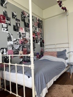 90cm*180cm, lepo ohranjena, bele barve, primerna za rabo osnovnošolke / gimnazijke / študentke. Podarimo tudi vzmetnico.