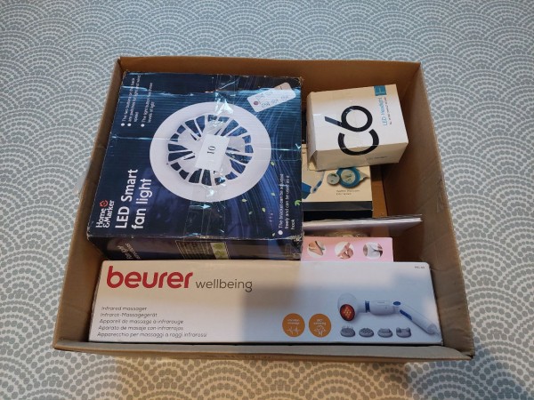 Cela škatla, polna raznih aparatov in pripomočkov za dom, avtomobil itd.