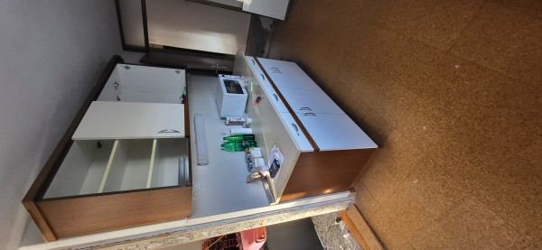 Lesena, delujoči stroji, dobro ohranjena, priložene slike kako kuhinja izgleda.