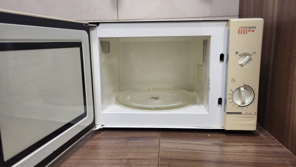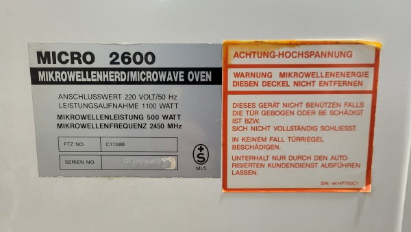 Delujoca starejsa mikrovalovna pecica Micro Line 2600, bele barve.