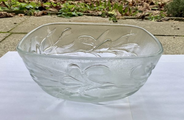 Kot na sliki, stekleni, ena okrogla in ena kvadratna. Okrogla ima rahlo odškrtnjen rob.